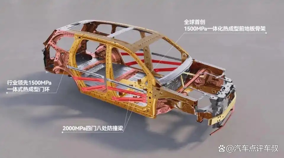 在车身材料及结构方面,华境S整车高强钢及铝合金占比超过85%,其中近30%为热成型超高强钢,为车身安全奠定了坚实基础。针对侧面撞击的薄弱环节,华境S采用了与宝钢共创的1500MPa一体式热成型前地板骨架,以及1500MPa一体式热成型门环,搭配十宫格结构的挤压铝门槛加强梁,同时在四门八处增设2000MPa车门防撞梁,堪比潜艇用钢,大幅提升了车身侧面的抗冲击能力,让侧面防护坚不可摧。在此超高强钢材质和一体式结构基础上,华境S进一步采用五纵十一横六环笼式车身结构,使车辆无论是在承受高速撞击的单点暴力冲击,还是在不规则跌落翻滚中的多维扭曲力时,都能确保车身框架的完整性与电池包的安全。