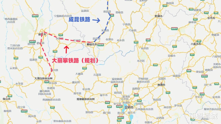 大丽攀铁路(大理经丽江至攀枝花铁路)是连接云南与四川两省的重要交通干线,全长约340公里,预计总投资674亿元。线路南起云南省大理市在建大理枢纽大理洱海站(原大理北站),向北途经宾川县、鹤庆县、丽江市,往东跨越金沙江后进入永胜县、华坪县,再次跨越金沙江后进入四川省攀枝花市,最终引入既有成昆新双线攀枝花南站。